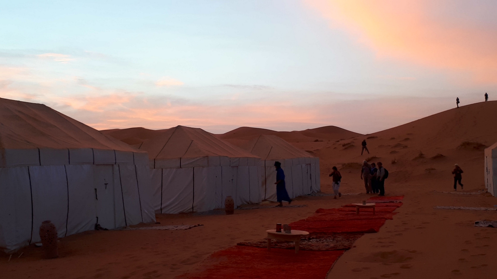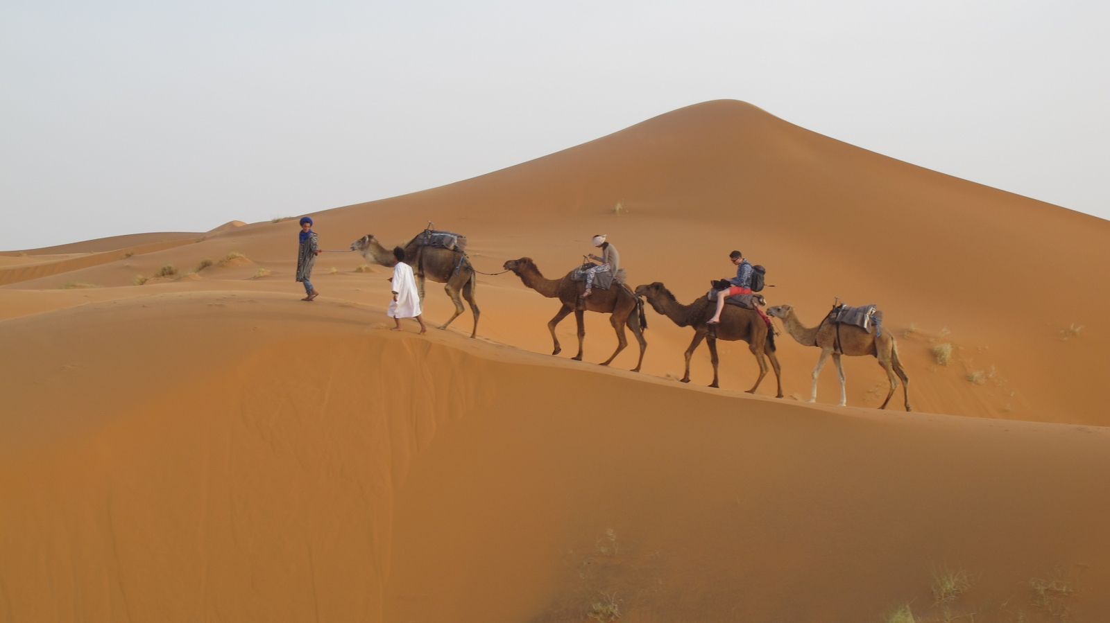 Bu sabah Fas’taki vadilerden birinde uyandık. Bu gün sabah erken bir kahvaltının ardından önce Todra Vadisine kısa bir gezinti yapacağız. Devasa duvarlar arasında bereketli bir vadi burası. Hemen ardından da Sahra Çölü’ne uzanan yolculuğumuz başlıyor ! Bu gün yolumuz üzerinde ilginç noktalar var. Fosil içeren kayaçlardan ev eşyaları üreten bir atölyeyi ziyaret edeceğiz, yerel el dokuma halıların da bulunduğu bir galeride kısa bir mola vereceğiz,dev palmiyelerin yetiştiği Ziz vadisi ve Rissani’den geçip Sahra Çölü’nün kıyısındaki yalnız yerleşim Merzouga ‘da duracağız. Buradan sonra yola deve sırtında devam ediyoruz ! Merzouga ‘da develer hazırlandıktan sonra eski zaman kaşifleri gibi çöle giriyoruz. En az bir saat deve sırtında yolculuk yapıp inanması güç bir vahaya gideceğiz. Akşam gün batarken çölün nasıl renk değiştirdiğine, vahanın nasıl bir cennet parçası olduğuna inanamayacaksınız! Bol fotoğraflı bu yolculuktan sonra vahadaki kampımıza yerleşiyoruz. Burası gayet konforlu hazırlanmış bir Berberi kampı! Restoran çadırından , otel odası şeklindeki kıl çadırlara kadar her şey var! Bu gece Sahra Çölü’nün en yüksek kum tepeleri arasında konaklıyoruz !