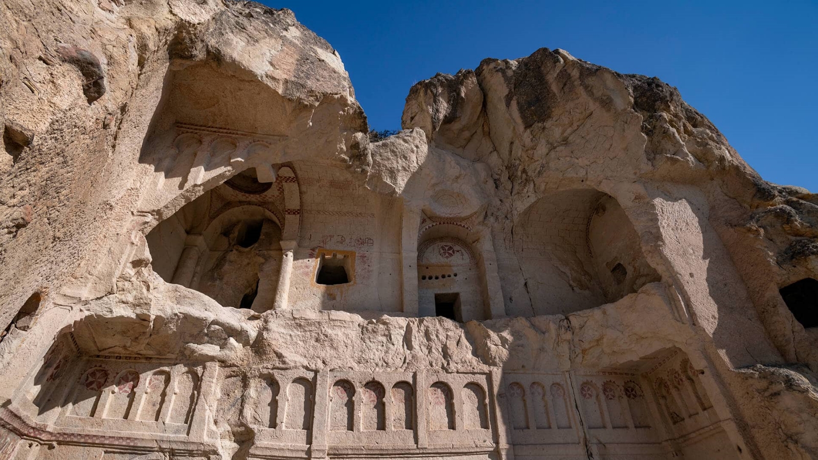 Ankara’dan erken saatlerde aracımızla ayrılıyoruz. Yaklaşık dört bucuk saat süren bir yolculuktan sonra sevimli Göreme’ye varıyoruz. Otelimize yerleştikten sonra Kızıl vadi Panoramik Seyir noktasına doğru yola çıkıyoruz. Bugün ki yürüyüşümüz kısa sadece 5 km. Ancak bu kısa mesafe de inanılmaz güzelliklerle karşılacağız. Volkanik patlamalardan sonra bölgeyi kaplayan volkanik materyalin milyon yıllar içinde nasıl su ve rüzgar ile aşındığını ve insanoğluna nasıl bir hayatta kalma imkanı verdiğine tanık olacağız. Kızılçukur’ da vereceğimiz yemek molasında sonra buradaki özel bir kilise olan Üzümlü Kilise’yi ve Aziz Niketas’ın Keşiş hücresini görerek tarih yolculuğumuza başlıyoruz. Ardından Güllüdere’ye doğru yönelirken bir yandan jeolojik bilgileri almaya ve çevremizdeki yapıları anlamaya başlayacağız. Kolonlu Kilise ve Haçlı Kilise ziyaretleri ile yolumuza devam edip aracımızla Romantik Çavuşin Köyü’nde buluşacağız. Dinlenmek için otelimize dönüyoruz