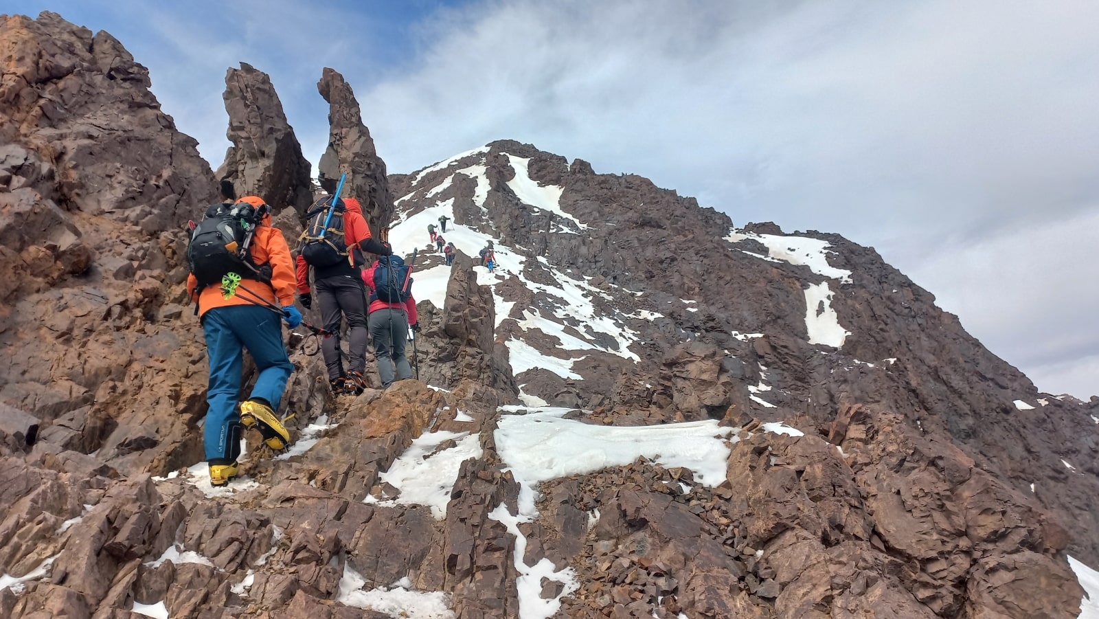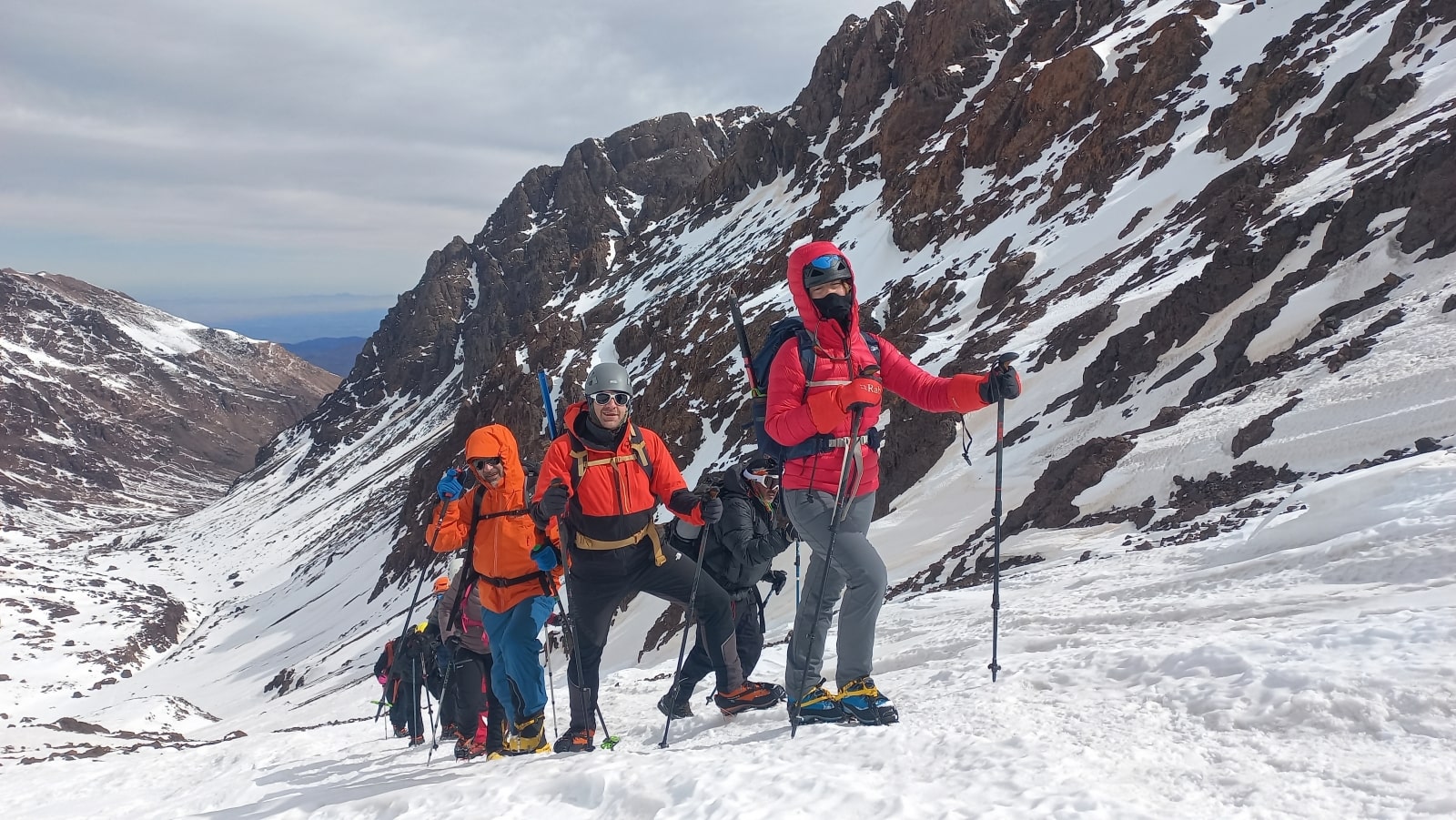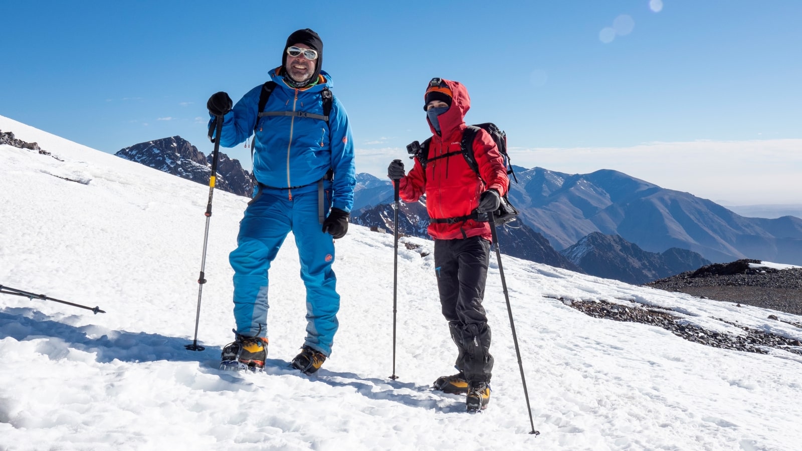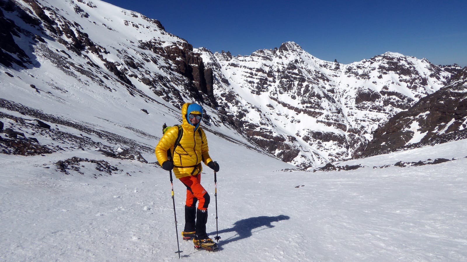 Deneyimli MONTIS dağ liderleri ve uzun yıllardır bu dağlarda birlikte tırmandığımız Faslı dağ rehberi takım arkadaşlarımız gerektiğinde sizlere ipli emniyet alacaklardır. Geçide kadar bu tatmin edici tırmanışın üstüne amacımız birbirine oldukça yakın her iki doruğa da tırmanarak Atlas Dağları’nın en yüksek üçlüsüne başarı ile ulaşmak. 4000 m’den yüksek bu dağlarda sizi enfes bir manzara bekliyor. Keyifle manzaranın ve Atlas Dağları kışının tadını çıkarıyoruz. Dikkatli bir biçimde rotamızı geri inerek öğleden hemen sonra dağ evimize inmeyi planlıyoruz. Bu akşam dağ evimizde küçük bir kutlamaya ne dersiniz.