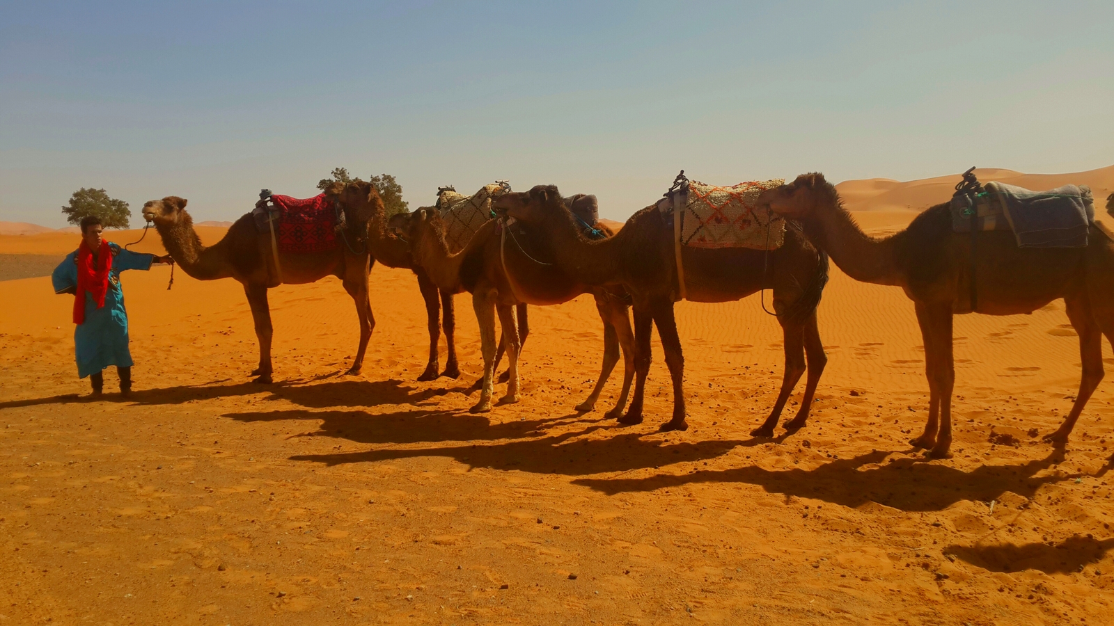 Bu sabah Fas’taki vadilerden birinde uyandık. Bu gün sabah erken bir kahvaltının ardından önce Todra Vadisine kısa bir gezinti yapacağız. Devasa duvarlar arasında bereketli bir vadi burası. Hemen ardından da Sahra Çölü’ne uzanan yolculuğumuz başlıyor ! Bu gün yolumuz üzerinde ilginç noktalar var. Fosil içeren kayaçlardan ev eşyaları üreten bir atölyeyi ziyaret edeceğiz, yerel el dokuma halıların da bulunduğu bir galeride kısa bir mola vereceğiz,dev palmiyelerin yetiştiği Ziz vadisi ve Rissani’den geçip Sahra Çölü’nün kıyısındaki yalnız yerleşim Merzouga ‘da duracağız. Buradan sonra yola deve sırtında devam ediyoruz ! Merzouga ‘da develer hazırlandıktan sonra eski zaman kaşifleri gibi çöle giriyoruz. En az bir saat deve sırtında yolculuk yapıp inanması güç bir vahaya gideceğiz. Akşam gün batarken çölün nasıl renk değiştirdiğine, vahanın nasıl bir cennet parçası olduğuna inanamayacaksınız! Bol fotoğraflı bu yolculuktan sonra vahadaki kampımıza yerleşiyoruz. Burası gayet konforlu hazırlanmış bir Berberi kampı! Restoran çadırından , otel odası şeklindeki kıl çadırlara kadar her şey var! Bu gece Sahra Çölü’nün en yüksek kum tepeleri arasında konaklıyoruz !