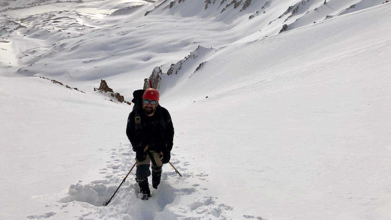 Kısa bir manzara molasının ardından zirveyle vedalaşıp olabildiğince dikkatli bir biçimde gecenin karanlığında ve günün ilk ışıklarında çıktığımız etapları kamp yerimize kadar geri iniyoruz. Kampta dinlenip, toplandıktan sonra aracımızla buluşmak için yine kayak tesislerine ineceğiz. İnişte telesiyej faydalanacağız.